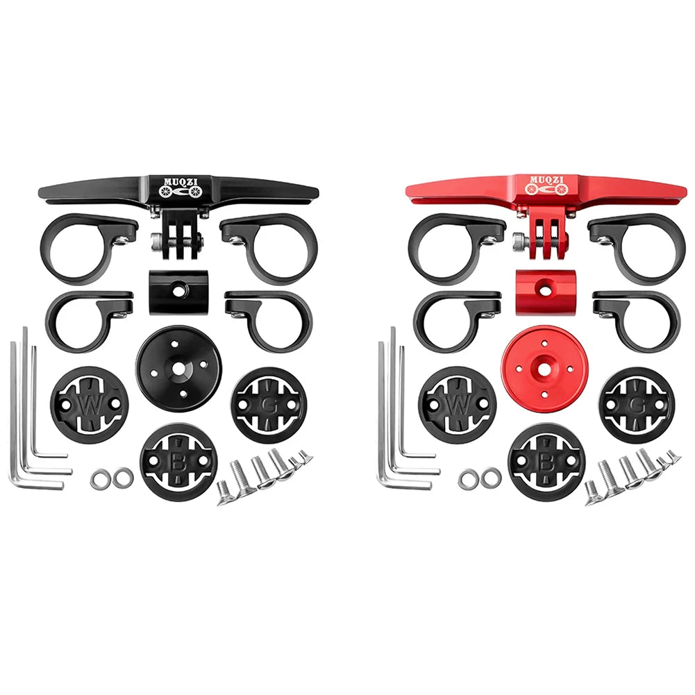 Enhance your triathlon setup with this versatile TT bar computer mount, designed to securely hold bike computers, cameras, and lights on 22.2mm or 25.4mm handlebars. Crafted from durable aluminum alloy combined with flexible plastic, it ensures a lightweight yet robust attachment. The mount includes three computer bases for Garmin, Bryton and Wahoo. Its sliding design adjusts from 70 to 135mm, fitting various aero bar widths while improving stability and reducing handlebar shake. Ideal for aluminum or carbon fiber bars, this mount offers a reliable, customizable solution for time trial and triathlon... indoors and outdoors.